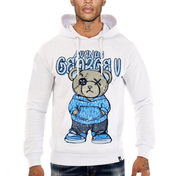 XL Men’s Black White Sweater Hoodie George V Designer Brand Paris Rhinestone